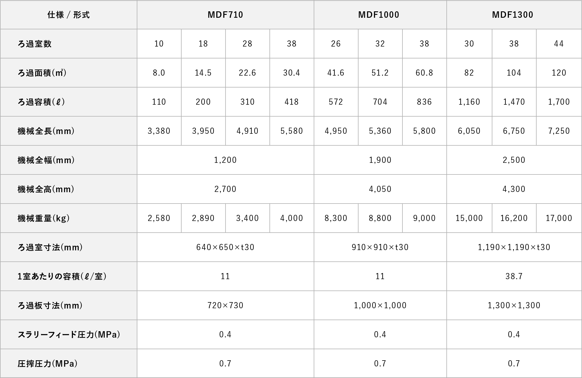 0.7Mpaの圧力で圧搾するため低含水のケークができます。