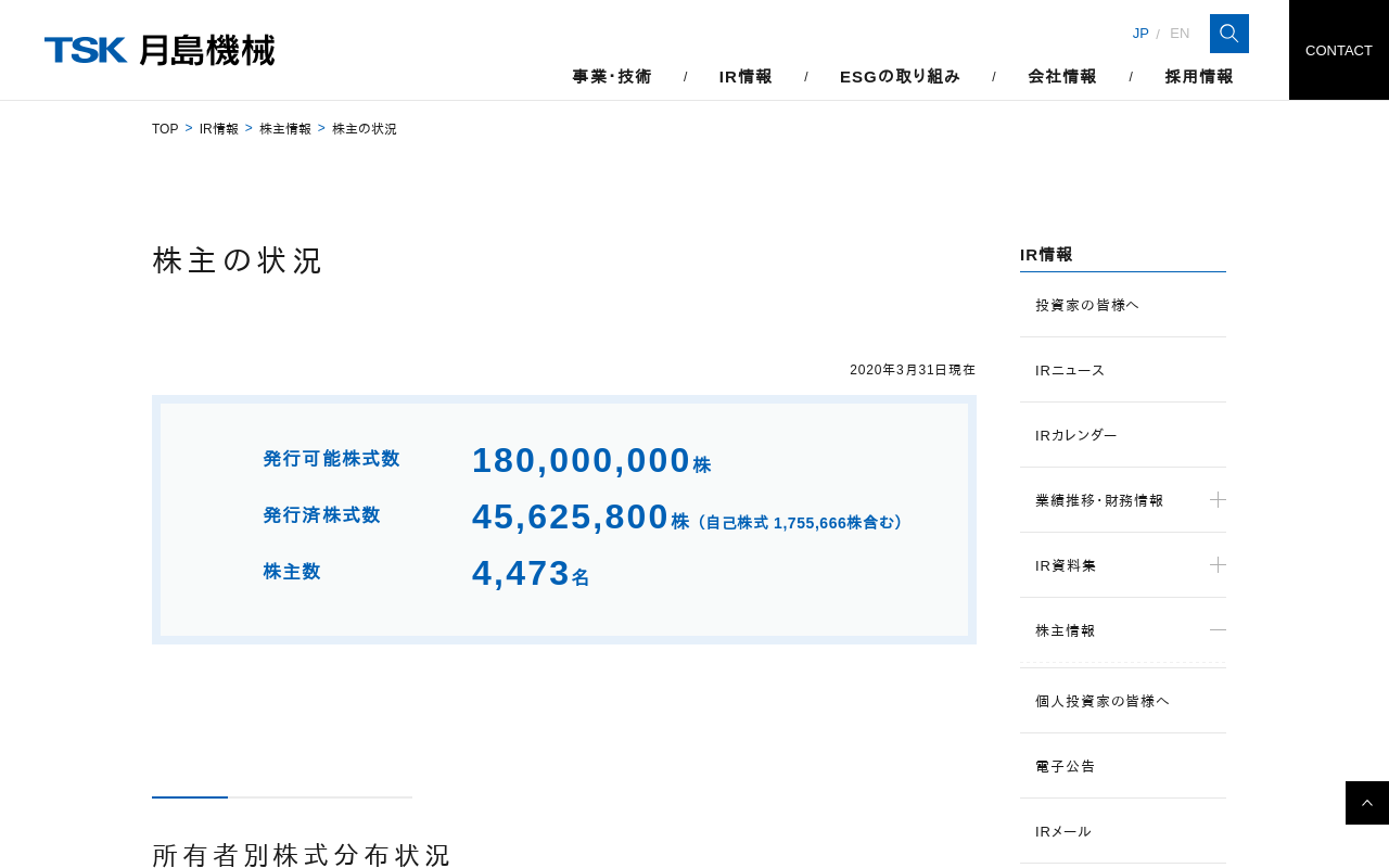 株主の状況 | IR情報 | 月島ホールディングス株式会社 IR情報 (注) 持株比率は自己株式4,246,358株を控除して計算しております。 経営方針 経営方針 投資家の皆様へ 中期経営計画 資本コストや株価を意識した経営の実現に向けた対応 ディスクロージャーポリシー 経営方針 投資家の皆様へ 中期経営計画 資本コストや株価を意識した経営の実現に向けた対応 ディスクロージャ...(もっと見る)