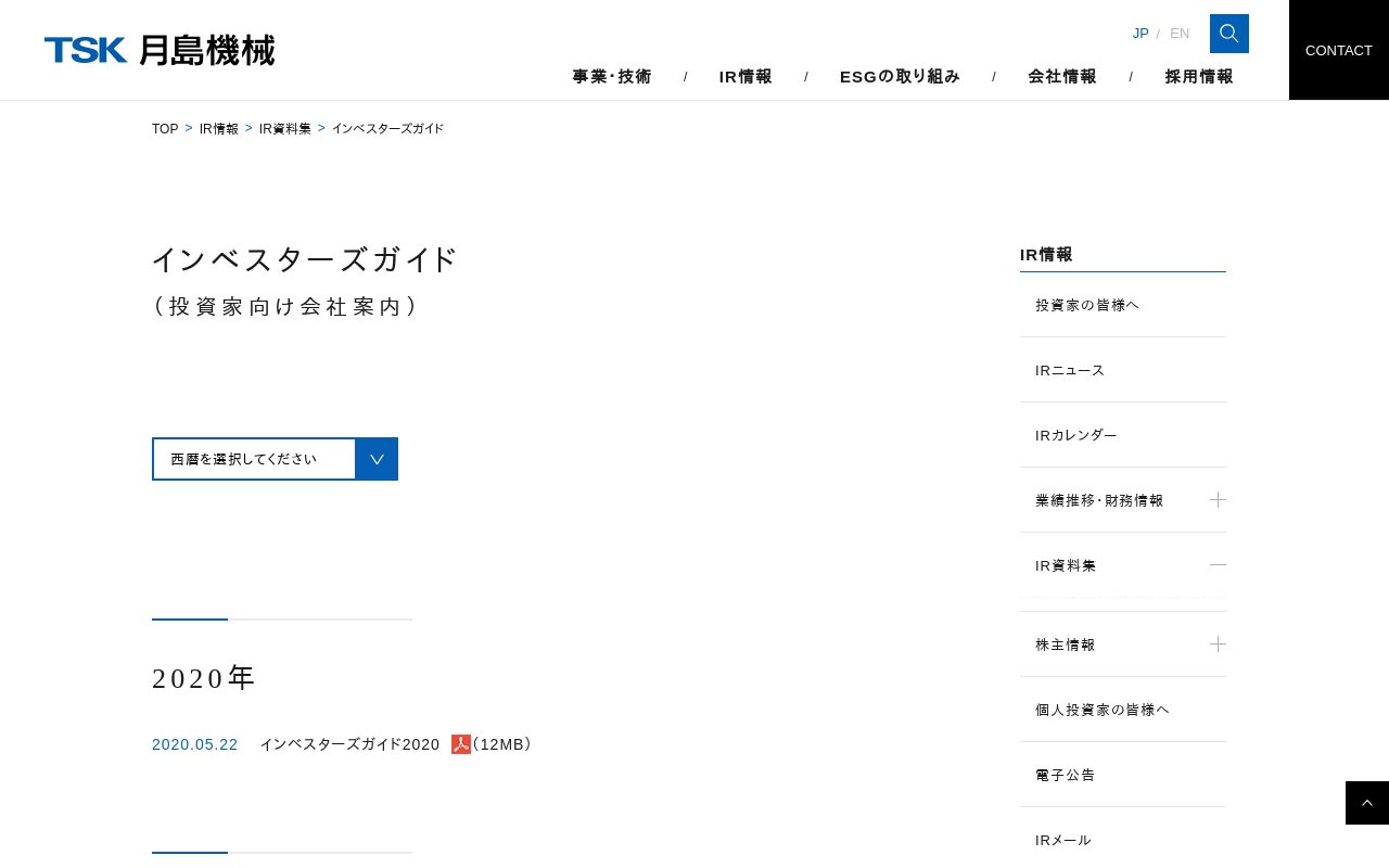 会社案内|IR情報|月島ホールディングス株式会社 IR情報 IRサイトについて 2026.01.14会社案内 (6MB) 2025.06.23会社案内 (7MB) 2024.10.01会社案内 (7MB) 2023.10.02会社案内 (5MB) 2022.05.24会社案内(インベスターズガイド2022) (13MB) 2021.05.24会社案内(インベスターズガイド2021) (12MB...(もっと見る)
