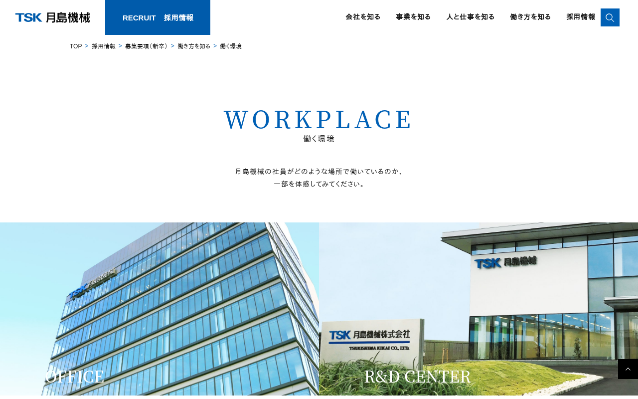 働く環境 | 月島ホールディングス株式会社 OFFICE WORKPLACE 本社オフィスツアー R&Dセンターツアー 室蘭工場紹介動画 働く環境 月島ホールディングスグループの社員がどのような場所で働いているのか、 一部を体感してみてください。 OFFICE VIEW MORE R&D CENTER VIEW MORE MURORAN VIEW MORE TOP 採用情報 募集要項(新卒) 働...(もっと見る)