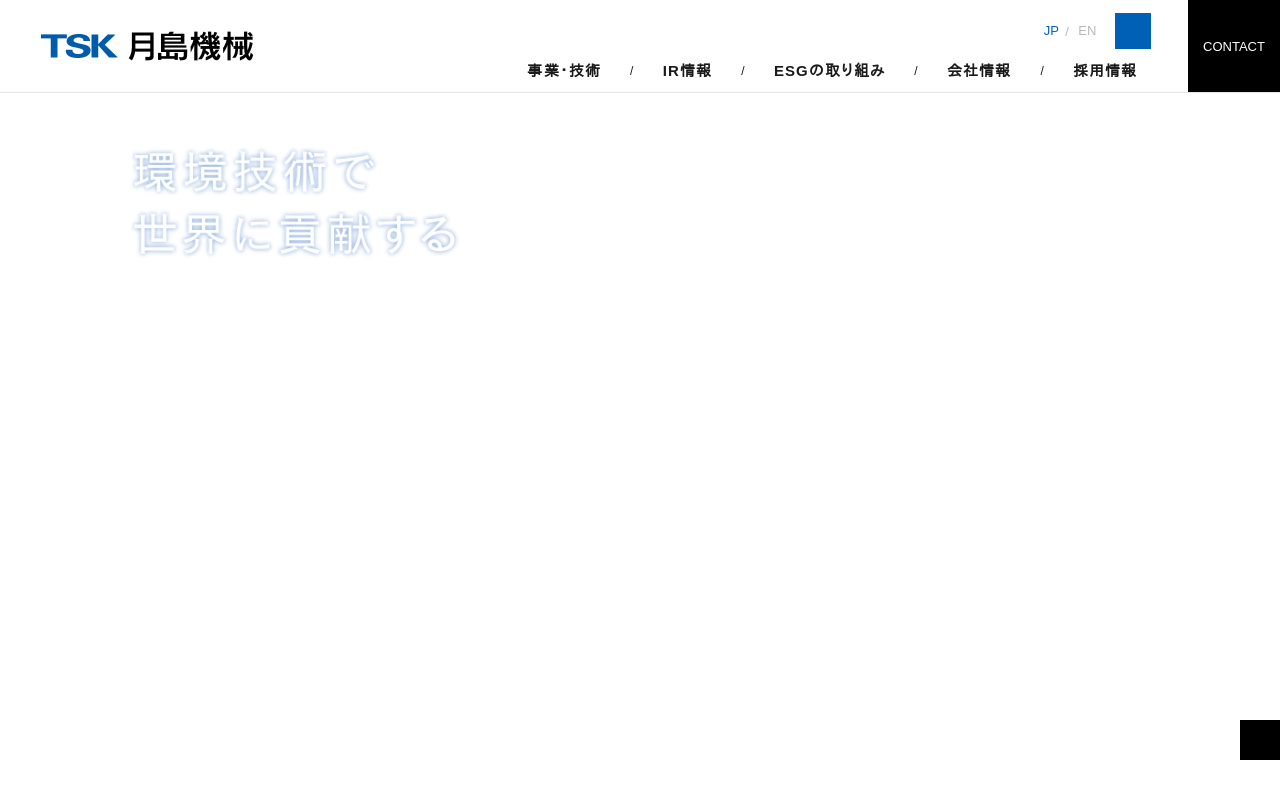月島ホールディングス株式会社 月島ホールディングス お知らせ 月島ホールディングスグループ コーポレート・ガバナンス 環境技術で世界に貢献し 未来を創る おかげさまで2025年8月に創業120周年を迎えました 月島ホールディングスグループのDXの取り組み 早わかり月島ホールディングスグループ 会社情報 IR情報 採用情報 サステナビリティ 月島JFEアクアソリューション 月島機械 月島環境エンジニアリング...(もっと見る)
