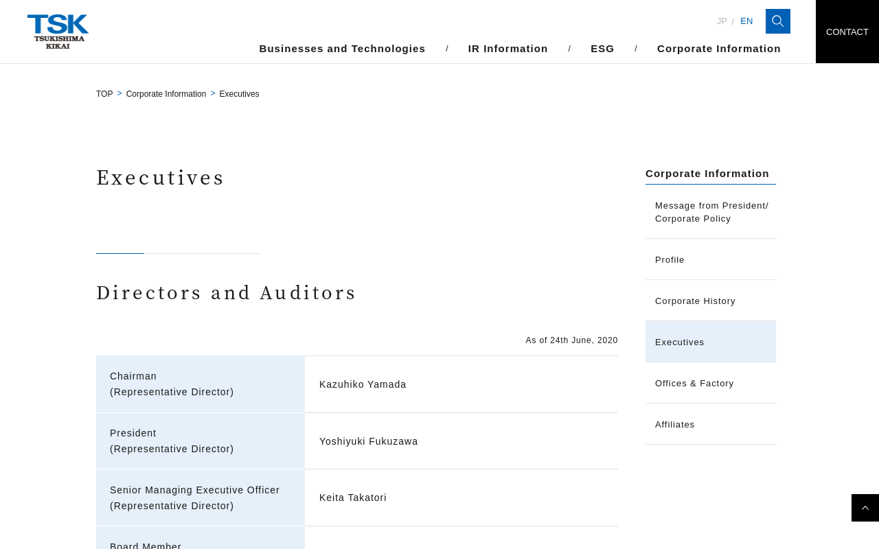 Executives|Corporate Information|Tsukishima Holdings Co., Ltd. Executives Directors and Auditors Executive Officers Corporate Information As of 1 April , 2026 President (Representative Director) Jun Kaw...(もっと見る)