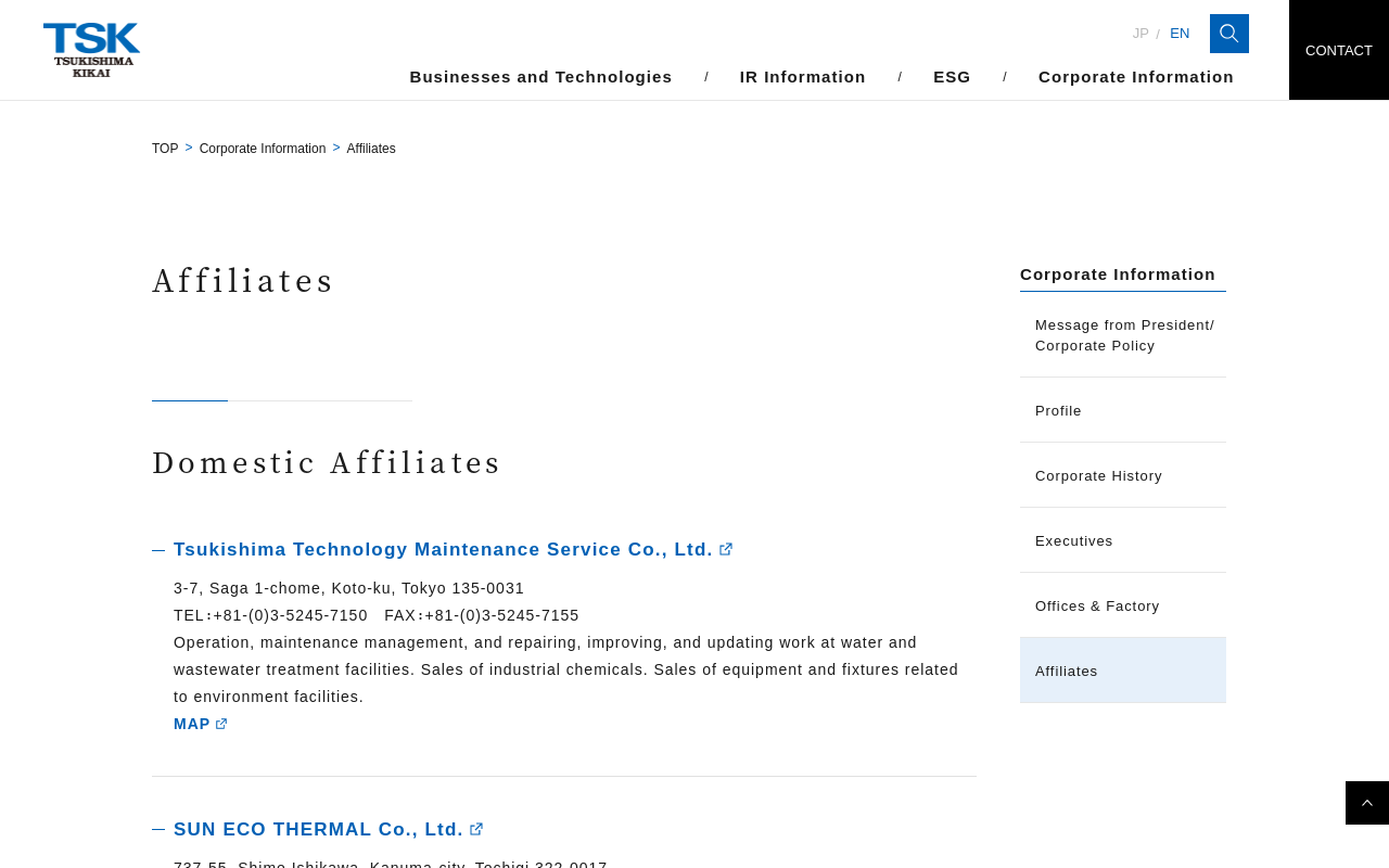 Affiliates|Corporate Information|Tsukishima Holdings Co., Ltd. Affiliates Domestic Affiliates Overseas Affiliates Corporate Information Tsukishima JFE Aqua Solution Co.,Ltd. Tsukishima Kikai Co., Ltd. Tsu...(もっと見る)